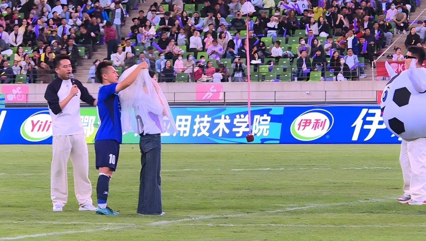 现场注意到,当晚比赛紧张激烈,上半场鄂尔多斯队以3球领先呼伦贝尔队,球迷热情高涨。中场休息时段,因赵晓东的精心“策划”的求婚,这场比赛变得尤为特别。