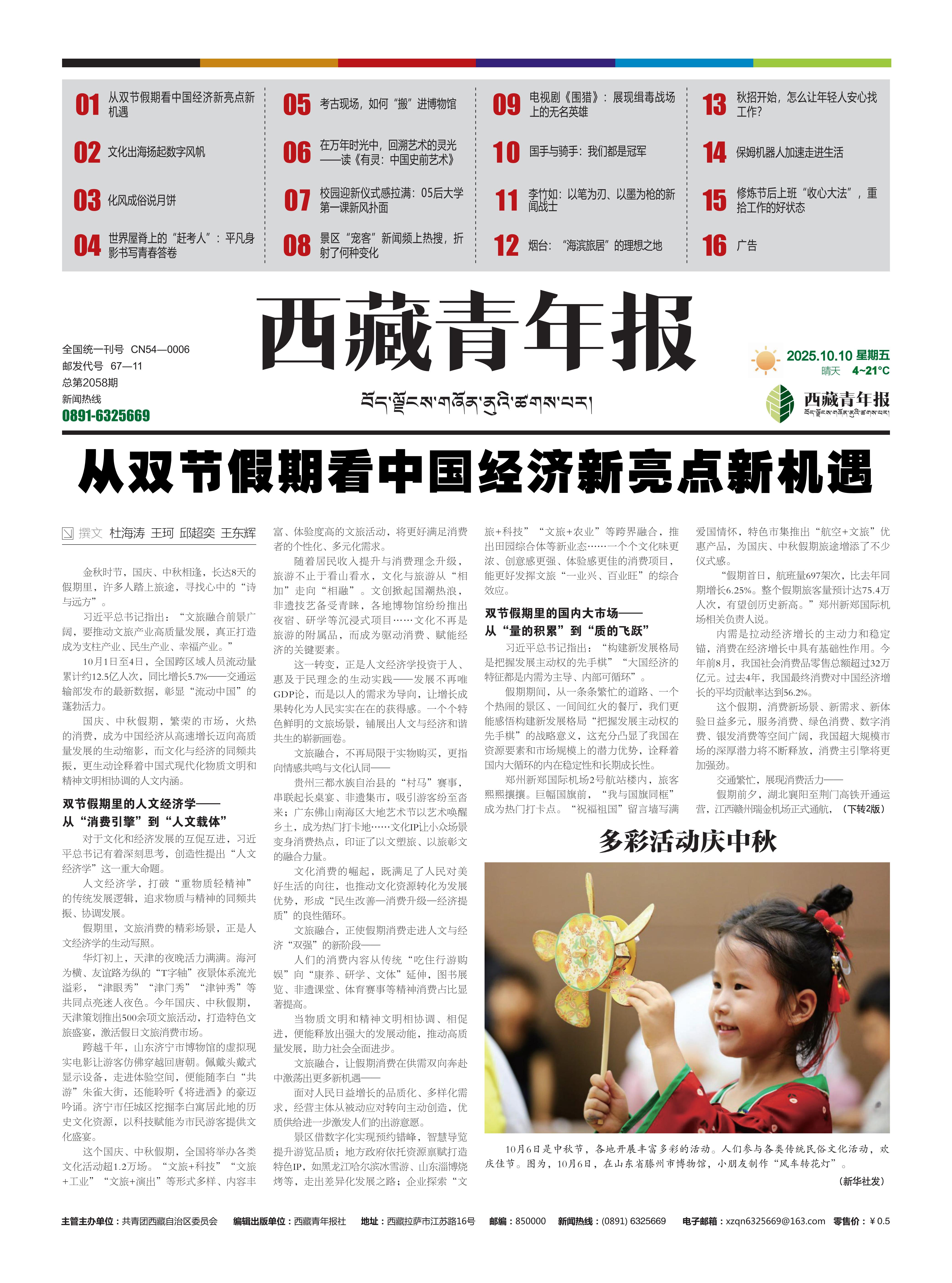 西藏青年报时事 从双节假期看中国经济新亮点新机遇 多彩活动庆中秋