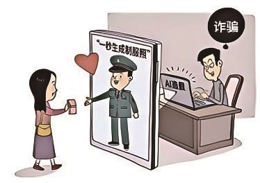 今年4月,江苏省江阴市人民法院对一起冒充军人招摇撞骗案作出判决。网民路某并非现役军人,却盗用网络上军人训练的照片发布在短视频平台上;收获不少点赞后,他又用AI将自己的头像合成到军装照上,并花钱伪造军官证,摇身变成“少校军官”。在骗取6名女性信任后,他以“车祸”“租车见领导”等借口诈骗3万多元。法院以冒充军人招摇撞骗罪判处其有期徒刑2年。