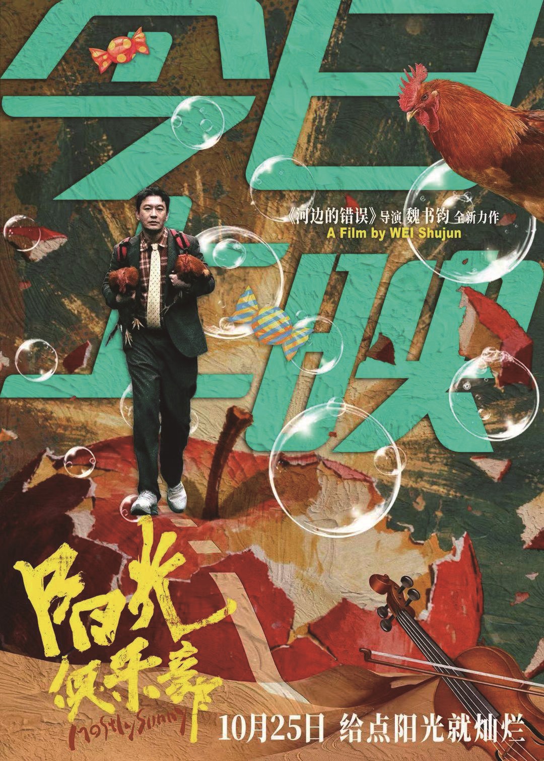 此外,贾樟柯的表演也让人惊喜万分,以往仅仅客串电影的他,本次却承担了一个关键角色:“阳光教父”蔡博士。这一角色身着西装,时刻戴墨镜,派头十足,为全片贡献出许多难以忘怀的幽默金句。正如蔡博士在片中的名言那样,“不要让昨天的阴霾,笼罩今天的阳光。”影片为银幕带来独特而烂漫的暖阳,在这个人均内耗的时代里,重提积极乐观的重要性。