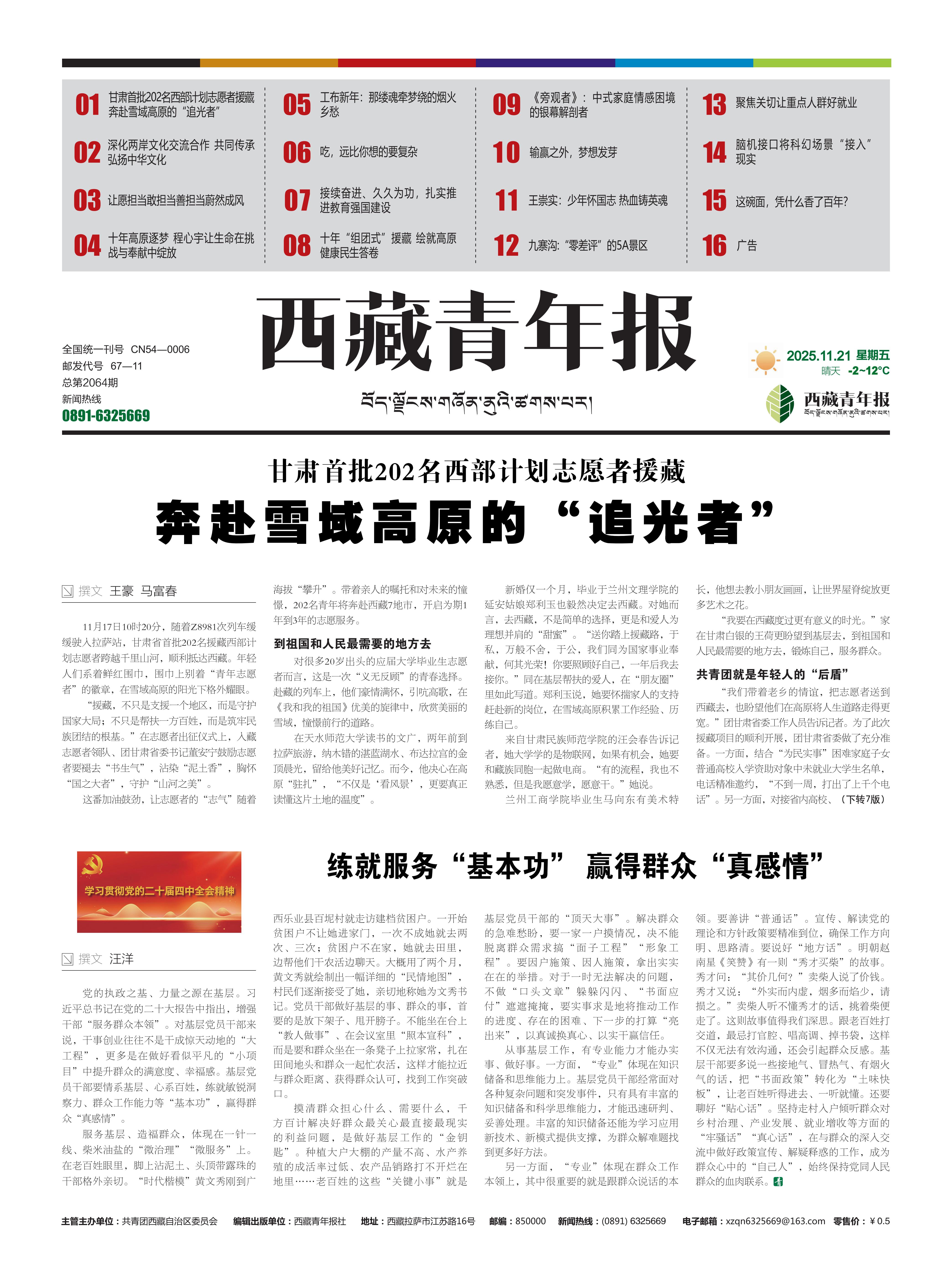 西藏青年报时事 奔赴雪域高原的“追光者” 练就服务“基本功” 赢得群众“真感情”