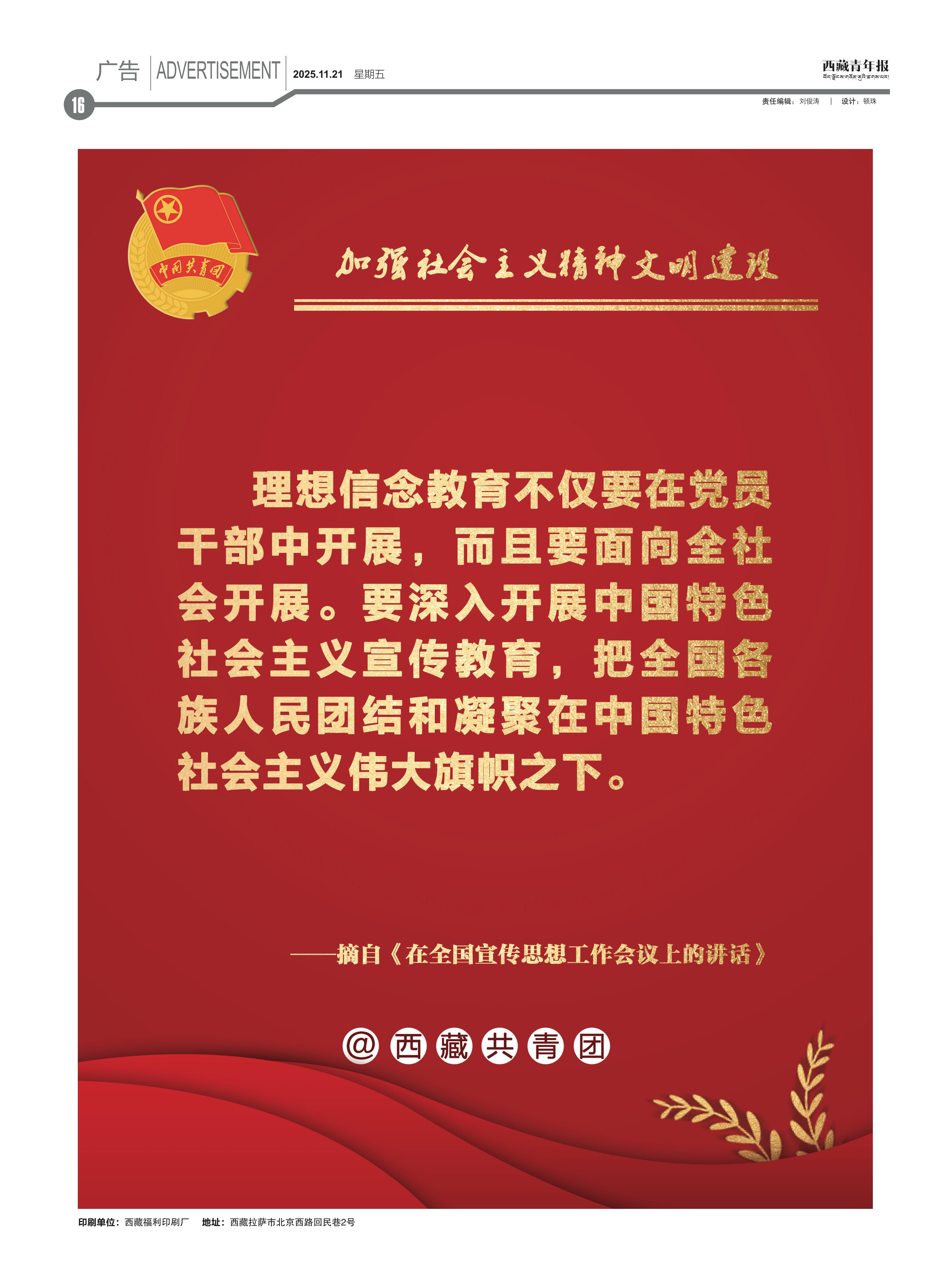 西藏青年报社出版  |  国内统一刊号:CN54—0006  |  邮发代号:67—11
