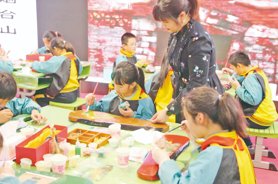首先,在课程层面,非遗以主题单元、项目模块的方式被纳入学校课程,成为教学主线的一部分。如福建漳平市新桥中心学校以农民画为核心,设立“农民画艺术工作坊”,把课堂学习、教师培训和乡土教材建设贯通起来,让非遗教学从一次活动延伸为常态课程。其次,在评价层面,从“完成结果”转向“生成过程”。例如,福州市台江第三中心小学在“船政木刻版画”课程中,引导学生走进上下杭街区写生、访谈藤编艺人,再回到课堂完成创作与展示。教师通过学习档案与作品记录,追踪学生在体验与再现中对非遗的理解与情感生成,使学习过程本身成为文化浸润的延伸。最后,在协作层面,构建“学校—传承人—家庭—社区”的多元协同机制。非遗传承人走进课堂,家长与学生共同参与创作、展演与传播,让非遗成为每个孩子可感、可亲、可续的生活背景。从“教一时”到“育终身”,非遗美育的生态图景,正在缓缓铺陈。