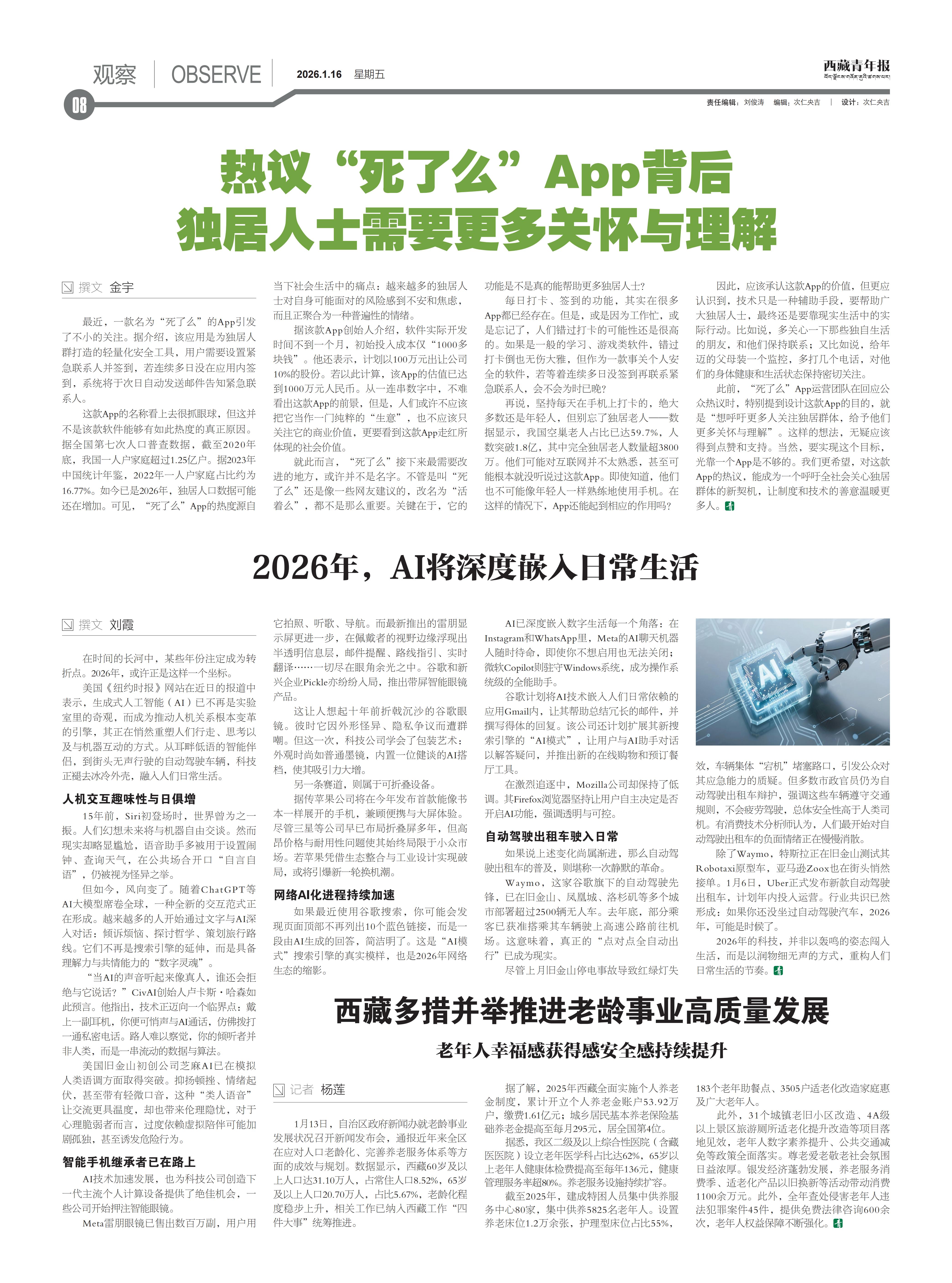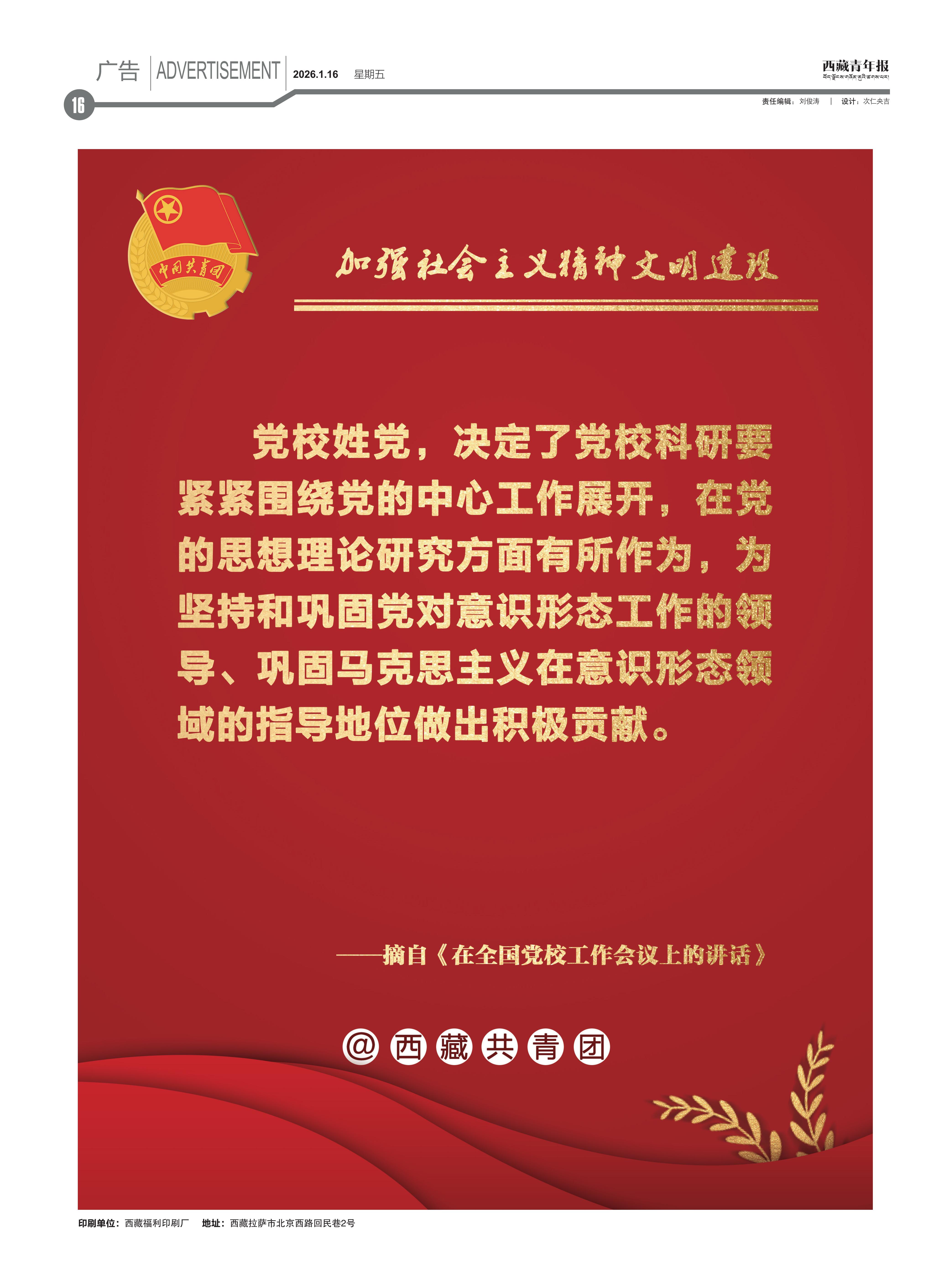 西藏青年报社出版 | 国内统一刊号:CN54—0006 | 邮发代号:67—11