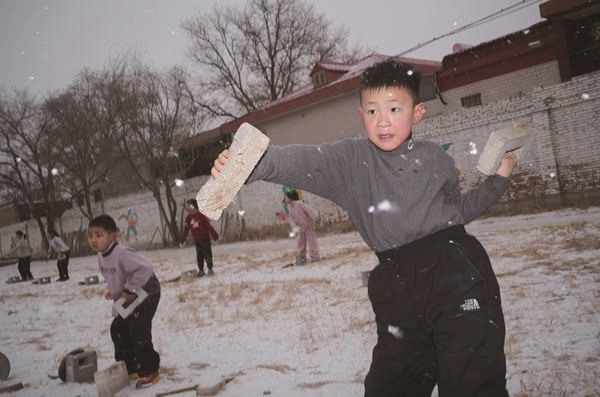 1月18日清晨7点半,天蒙蒙亮,河北省保定市莲池区五尧乡南沟头村的乡间路上,一群孩子迎着风雪向前奔跑,雪花落在他们汗湿的头发上,瞬间结成一层薄薄的白霜,远远望去,像一顶顶蓬 松的雪绒帽。
