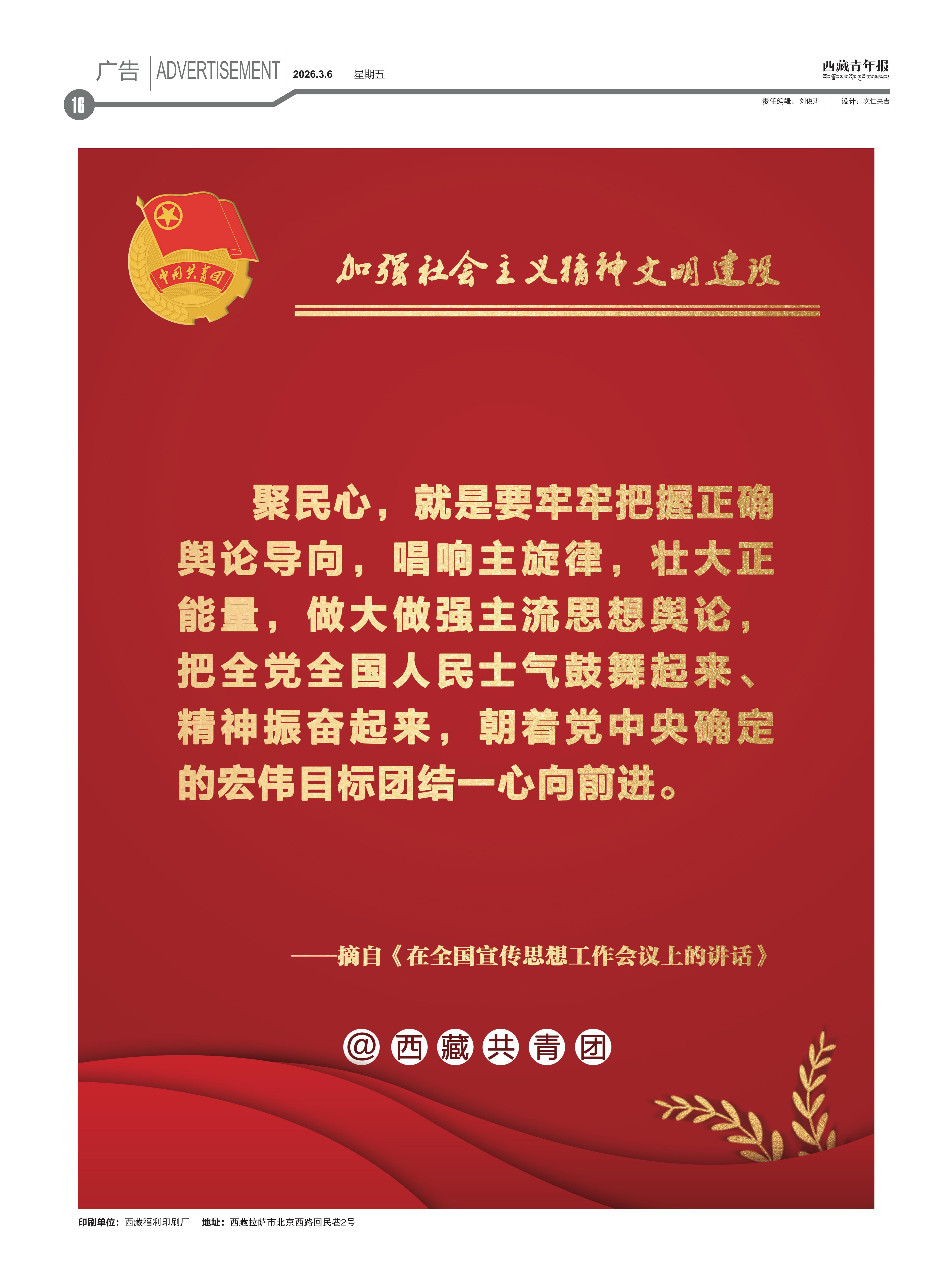 西藏青年报社出版 | 国内统一刊号:CN54—0006 | 邮发代号:67—11