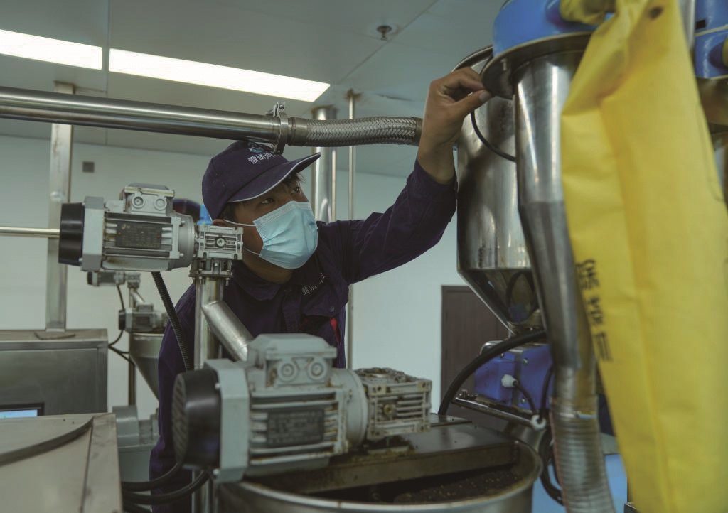 西藏山南市扎囊县重点招商引资企业——西藏纳兰生态产业有限公司工作人员在检查菜籽压榨机。