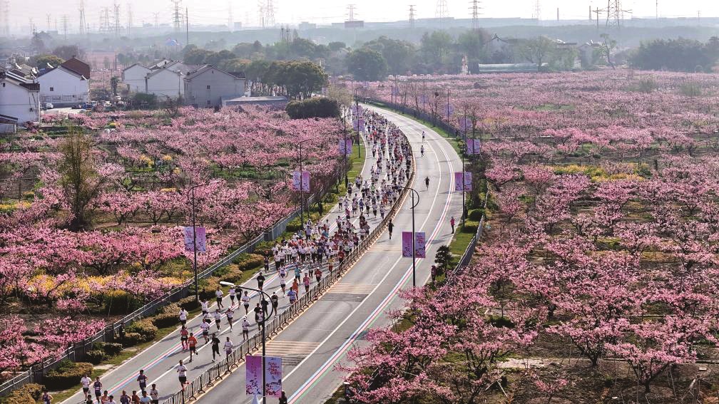 “通过把路跑和赏花、休闲、蜜桃文化融合,我们希望更多人走进阳山、品味阳山、乐享阳山。”阳山镇镇长陆慧说,阳山让“花经济”与“赛经济”交织成乡村旅游的重头戏。目前,当地已引入精品业态50余家,每年能吸引游客近250万人次。