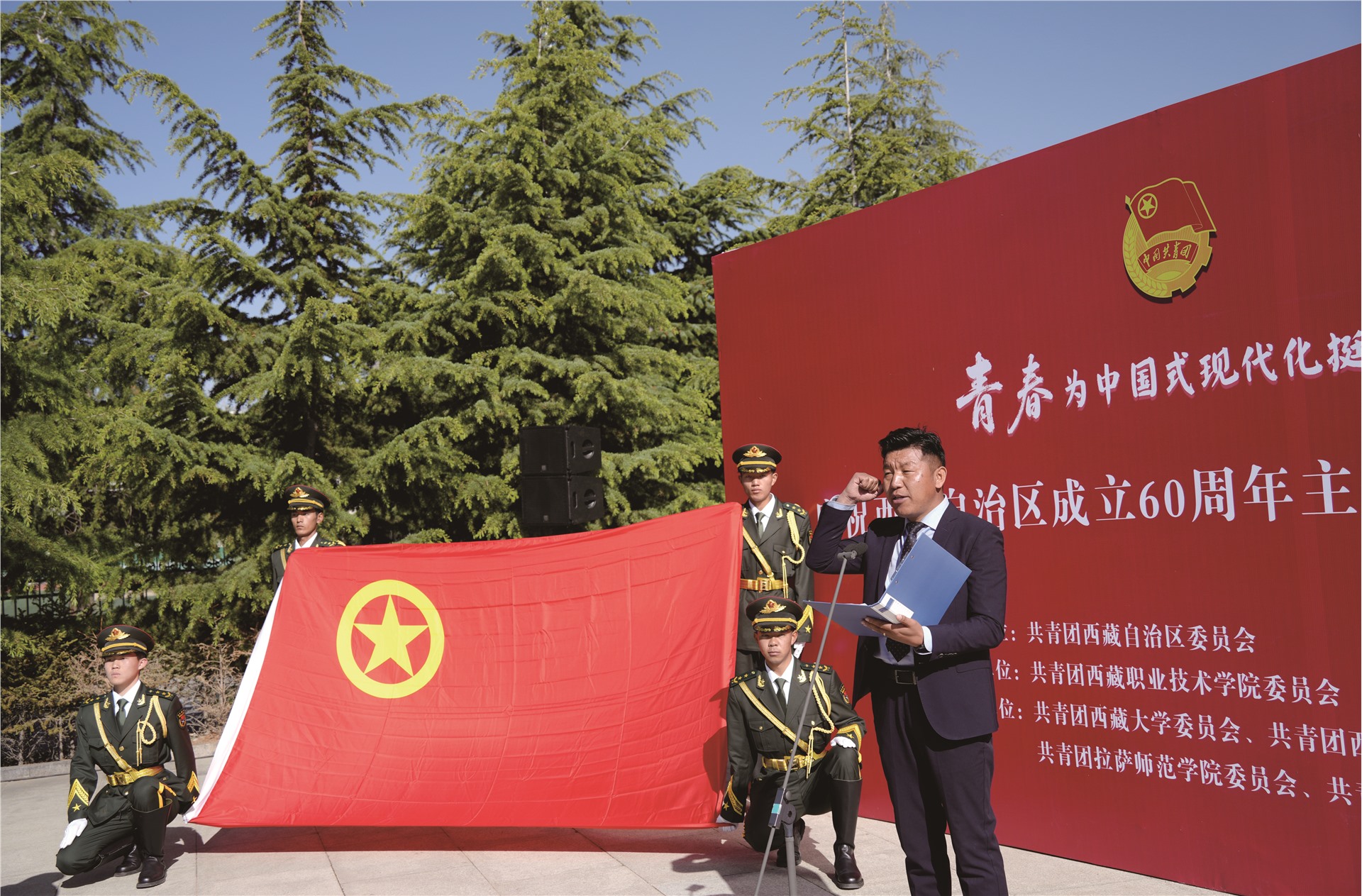 2025年“五四”前夕,边巴次仁带领团员青年重温入团誓词。本报记者 邢梦雨 摄