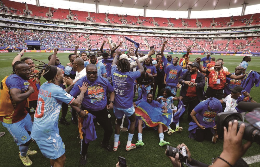 世预赛洲际附加赛决赛,刚果(金)队凭借图安泽贝在加时赛中的进球击败牙买加队,终场哨响,举国狂欢。